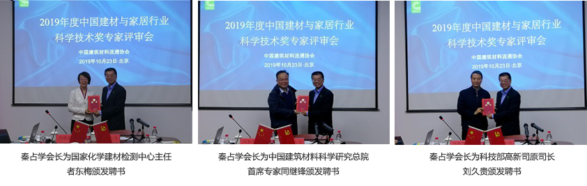 接下来,秦占学会长逐一为到场专家颁发中国建材与家居行业科学技术奖评审专家的聘书。